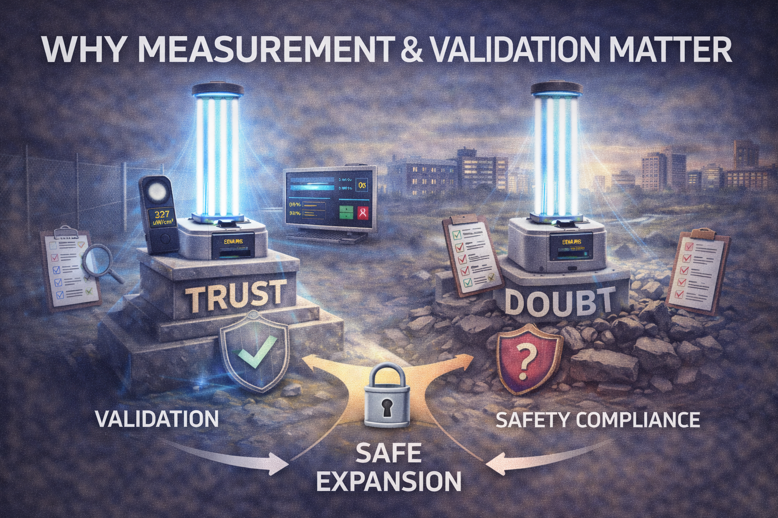 Measurement acknowledges uncertainty and replaces it with evidence. Validation replaces assumption with proof. Together, they support informed decisions, corrective action, and long-term trust in UVC technology.